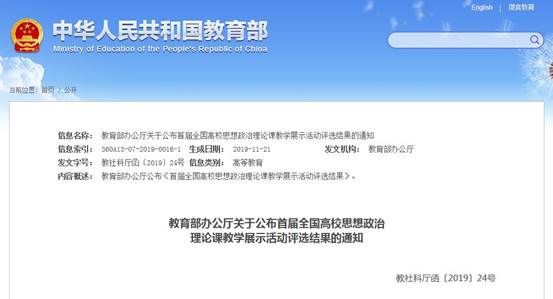12月4日,教育部“首届全国高校思想政治理论课教学展示活动”评选结果揭晓,我院思政课教师张莹夺得“思想道德修养与法律基础”教学展示一等奖。