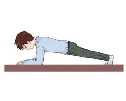 身体成直线,脚尖和两手前臂着地,核心收紧。