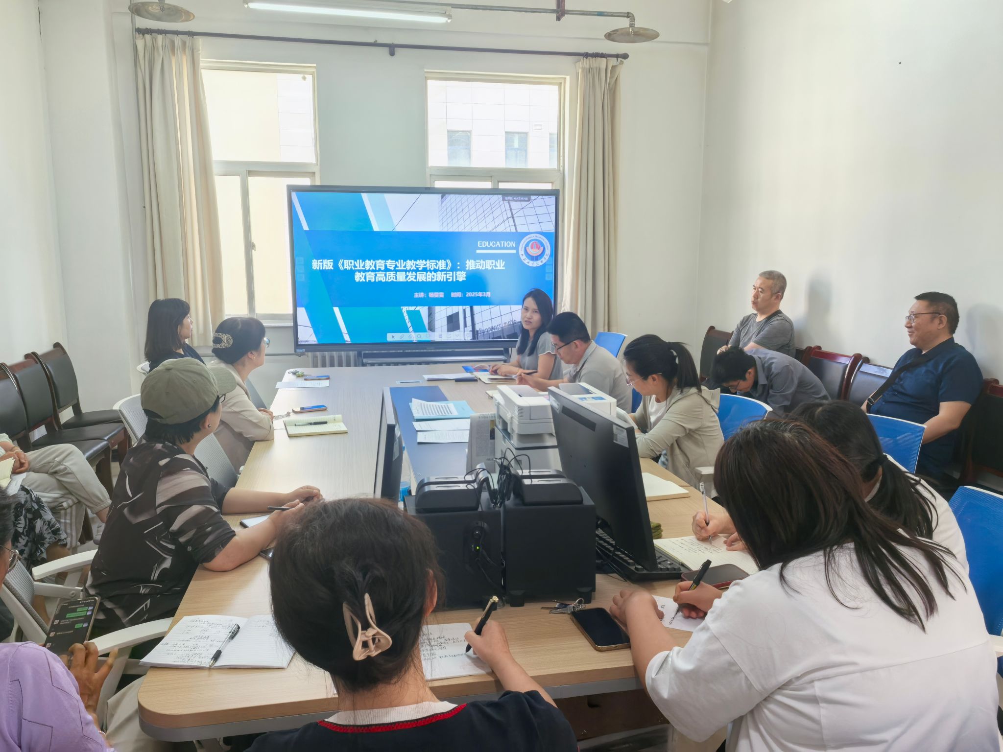 新标准既是路线图,更是责任状,应当成为每位职教工作者的案头宝典。课后,全体党员就如何落实《职业教育专业教学标准》进行了研讨交流。